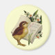 Imagem vitoriana de um pássaro olhando para uma mensagem em um livro que está descansando contra um buquê de narcisos. A mensagem diz, "Saudações Páscoas. Paz na Terra, boa vontade para os homens."