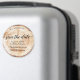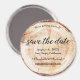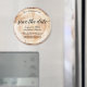 Personalize este casamento exclusivo Salve os ímãs do círculo de Datas. Ele apresenta um disco impresso de madeira cortada, perfeito para o seu casamento rústico. Fonte moderna do script para as palavras "Salvar a data" com traços longos de embelezamento sob medida. Chic e na moda.