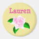 Personalize este Magnet de Nomes Pontilhados de Polka Amarelo e Rosa. Você pode mudar o nome para qualquer nome que quiser na área personalizada.