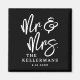 These custom magnets feature a simple black and white design with a clean black background and crisp white fonts for a timeless look. “Mr. & Mrs” appears in large handwritten script, paired with a classic serif font for a balanced and elegant style. At the bottom, the couple’s last name and wedding date are displayed for a meaningful finishing touch.