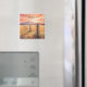 Brighten any surface with this romantic magnet of a sunset landscape, featuring pink, yellow, and blue wildflowers by a vine-covered fence, with purple mountains. Add your name or message for a cheerful, custom collectible, ideal for nature lovers.
