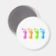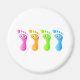 Uma fileira de quatro pegadas humanas coloridas com rostos felizes.
