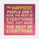 Design por Elizabeth Medina. Direitos autorais. AS PESSOAS MAIS FELIZES NÃO TÊM O MELHOR DE TUDO, SÓ FAZEM O MELHOR DE TUDO. Abstrato, Gossip, filosofia. Adicione sua própria imagem e/ou palavras. Alterar o fundo para qualquer cor. Dê como presente a você ou a um amado! Excelente para eventos pessoais, familiares, publicidade, sensibilização humanitária, consciência ambiental, promoções ou eventos empresariais! Excelente para REVENDA. Quanto mais você pede, mais você economiza dinheiro! Direitos autorais. Corresponder a outros itens. **********Serviço de atendimento ao cliente********** Se tiver alguma dúvida ou dificuldades com um pedido, ligue para TEL: 1-888-892-9953 nos EUA ou (408) 983-2800 Internacional. Horas: das 8h às 18h PST (11h às 21h00), de segunda à sexta-feira. $$$$$$$$COMISSÃO$$$$$$$ Você pode fazer comissão de 15% se ligar minha loja e/ou qualquer solteiro à sua loja, site pessoal, facebook etc. Muito fácil e grátis! Entre em contato com o Serviço de Atendimento ao Cliente. PS: VOCÊ PODE ADICIONAR QUALQUER ARTE NO SEU FACEBOOK OU TWITTER OU EM QUALQUER OUTRO LUGAR, DESDE QUE VOCÊ AFIRME QUE É DE GalleriaofArt.com! (Melhor ainda se você ligar e ganhar dinheiro em $$) OBRIGADOS TANTO!