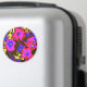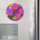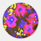 Um vibrante design azul, roxo, vermelho, amarelo e preto pop de petúnias.