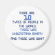 Piada binária - relacionado ao computador. "Há 10 tipos de pessoas no mundo, as que entendem binárias e as que não entendem."