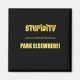 O texto amarelo escuro diz humoralmente que "a estupidez não é considerada uma desvantagem" e aconselha a "estacionar em outro lugar" contra um fundo negro. A mensagem critica o comportamento inadequado de estacionamento com tom sarcástico.