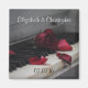 Foto artística de um velho piano focado nas velhas teclas amareladas com uma rosa vermelha esmaecida sobre as teclas e algumas pétalas soltas espalhadas. Esta imagem tem um humor um pouco melancólico e sentimental com um pouco de saudade. Personalize com o nome da noiva e do noivo e a data do casamento.