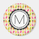 Um ímã com um doce padrão de Verão, contendo picolés e cones de sorvete em aquarelas vibrantes coloridas. Escreva seu dentro de monograma personalizado com uma forma de flor branca.