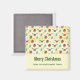 Um magnata de Natal com um padrão bonito com cones de pínus e holly em um fundo de aquarela amarela com pequenos círculos brancos espalhados ao redor.
