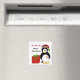 Um design de Natal divertido com um pinguim legal num chapéu de santa com um grande pacote vermelho ao seu lado. Ho, Ho, Ho, Feliz Natal é a mensagem.