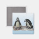 Este ímã apresenta dois adoráveis Pinguins africanos em pé em uma borda rochosa. São aves aquáticas, sem voo, cujas asas se tornaram nadadeiras. Cada um tem uma faixa preta e pontos pretos no peito. O padrão das manchas é único para cada pinguim, assim como as digitais humanas. Eles têm glândulas cor-de-rosa sobre os olhos e pés rosas e pretos.
