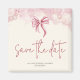 Elegant pink bow bridal shower save the date magnet with a cream and watercolor pink background. With a beautiful pink bow and handwritten typography, this save the date will be the delight for her bridal shower guests. Illustrated and designed by Patricia Alvarez.