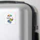 Pintinho aposentado decolou por um dia na praia com um guarda-chuva colorido e cobertor de praia, chapéu solar, óculos de sol, laptop, pilha de livros e uma bebida legal agradável