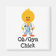 Uma pintinho amarela vestindo esfregões azuis com um estetoscópio em volta do pescoço e um casaco de laboratório com caneta no bolso em camisas Pintinhos OB/GYN, artigos de papelaria e mais material médico e roupa para uma obstetra feminina e ginecologista. Esses itens fazem uma obstetrícia e presentes ginecológicos fofos e engraçados para um formando de estudante de medicina, residente, estagiário, médico ou estudante de medicina. Estúdios, LLC.