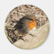 Um pisco de peito vermelho europeu pequeno bonito que senta-se em uma cerca que aprecia o calor do sol. Design fotográfico.
