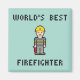 Design retratando um bombeiro de pixel e também dizendo: o melhor bombeiro do mundo.