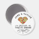 Personalize este ímã humorístico com os nomes de você e de sua esposa. Design apresenta duas fatias de pizza deliciosa com as palavras "pizza torta que é Amore". Perfeito para um casal adorável de pizza!