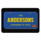 Mostre seu orgulho familiar, comemore um casal recém-casado ou crie o presente perfeito para motoristas e entusiastas de carros recém licenciados com este ímã fácil de personalizar. Este design apresenta uma placa azul com letras douradas e um pequeno adesivo laranja de registro no canto. Use o campo modelo para preencher seu próprio nome e texto em cada um dos campos. Esses ímãs também fazem favores festas de casamento divertidos e são perfeitos para reuniões familiares.