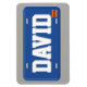 Crie o presente perfeito para os motoristas e entusiastas de carros recém-licenciados com esta placa de licença fácil de personalizar. Este design apresenta uma placa de licença azul com letras brancas e um pequeno adesivo de registro laranja no canto. Use o campo modelo para preencher seu próprio nome.