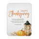 Adicione uma saudação de Ação de Graças de sua família. Design é composto por abóbora de outono, lanterna vintage e cornucópia.Um trecho da "Oração de Ação de Graças" de Ralph Waldo Emerson