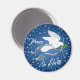Personalize este inspirador "Um tipo de" magneta branca! Ela apresenta uma pomba branca serena voando entre as estrelas de natal Carregando um ramo de oliveira com Cinzas voadoras e fitas prateadas se espalhando..."Paz na Terra"! Este é um Design de Arte Original do Artista Kerry Miller.