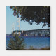 Vista da ponte Mackinaw que liga a península superior e inferior em Michigan. Fotografia tirada de um parque que leva a Fort Michinstacknac.