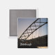 Uma silhueta de uma das muitas pontes de Pittsburgh; o pôr do sol atrás dela, fazer o céu com uma cor azul roxa. O nome da cidade pode ser encontrado no canto inferior esquerdo em uma fonte branca. A foto foi tirada no rio Monongahela durante uma noite de verão.