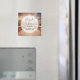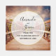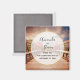 Obrigado de casamento, seus ímãs com uma fotografia cênica. Uma ponte de madeira em direção a um caminho rodeado por árvores florestais mudando de cor.
