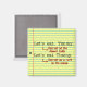 Este hilário ímã de geladeira quadrada para escritores, editores, bibliotecários, professores de inglês e esnobes gramaticais ilustra a importância da pontuação. Quando está chamando Timmy para jantar, precisa de uma vírgula. Quando estiver planejando canibalizar Timmy em uma jangada salva-vidas, deixe a vírgula para trás. Timmy ficará grato na situação nº 1 - e todos os outros no barco ficarão gratos pela situação nº 2. Seja qual for a situação, você será um membro orgulhoso da polícia gramatical. O fundo parece papel amarelo.