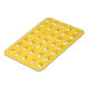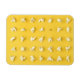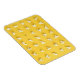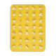 Esta design apresenta kernels de pipoca saltados dispostos em uma grade nítida em um fundo amarelo. Um kernel só está meio aberto.
