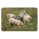 Este incrível ímã mostra uma bela fotografia de um grupo de porcos bonitos em um campo. Alguns dos porcos estão rastejando pela terra enquanto outros olham.