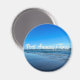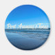 Lindo ímã de fotografia de Port Aransas, Texas, apresentando um belo céu azul e ondas do oceano lavando a costa. O crepúsculo na Ilha de Mustang é a hora perfeita para fotos da costa.