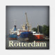 Navios vermelhos e azuis no porto de Roterdão, Países Baixos.