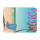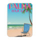 Cartoon Palma Maiorca Beach/Vacation poster, há uma cadeira de baralho listrada na praia.
