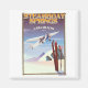 A vapor Primavera do Colorir viagens vintage poster de um velho avião retrô voando sobre uma montanha.
