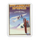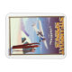 A vapor Primavera do Colorir viagens vintage poster de um velho avião retrô voando sobre uma montanha.