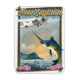 Impressão de poster de viagens de pesca da Nova Zelândia, com o oceano e um peixe de profundidade do fundo do mar azul do Pacífico.