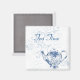 Íman bonito, de geladeira azul e branca, com um pote azul e branco de chá floral, em um fundo azul pálido de espiral floral, o texto lê Tea Time e pode ser personalizado para ler o que você quer.