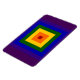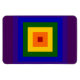 Mostre seu amor pela cor com um arco-íris geométrico. Uma série de quadrados vermelhos, laranja, amarelo, verde, azul, índigo e violeta irradia do centro desta design festiva. Imagem de pixel 5400 x 5400 criada digitalmente. Copyright ©2011 Claire E. Skinner, Todos os direitos reservados.