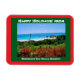 Feliz Natal! Apresentando uma relva verde e exuberante com flores laranja vibrantes com Horsfere Bay Beach, Bermudas, como a gota principal. Paróquia de Southampton Bermuda. Por https://www.zazzle.com/store/celestesheffey