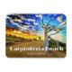 Carpinteria Beach apresenta uma imagem de viagem de arte retrô vintage que mostra uma imagem de um nascer do sol acima dos blefe na praia de Carpinteria, na Califórnia.