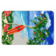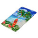Feliz Feriados das praias arenosas quentes da sua praia tropical favorita. Palmeira decorada com Enfeites de natal e luzes, com um prato de superfície retrorreflector inclinado contra a árvore de Natal.