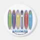 Malibu Beach, é um modo de vida. Seis pranchas coloridas sobre spray no mar azul, mostrando o estilo de vida do sul da Califórnia em areia, mar e surf. Divertido na praia com este design de pranchas de verão colorido de Malibu Beach. Aproveite a imagem e o estilo de vida californianos em qualquer lugar, colocando este ímã original do Estado Ouro perto do Oceano Pacífico na porta da geladeira.