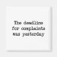 O prazo para a apresentação de queixas foi ontem. Neste momento, já não aceitamos queixas. Por favor, abstenha-se de reclamar.