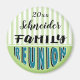 Um design de magneta de reencontro familiar divertido em verde e azul. Todos amam e apreciam ter um saque datado e personalizado do reencontro familiar. Dê como prêmios para jogos de reunião. Veja em um padrão de coordenação em um ímã quadrado, botão redondo e botão quadrado em Genealogy Gretures aqui no Zazzle.
