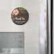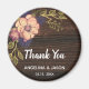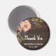 Ímã de agradecimento de casamento de madeira rústica e elegante com flores cor-de-rosa em aquarela.
