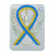 A fita azul e amarela suporta crianças com Síndrome de Down. A arte da fita de anjo da tutela azul e amarela pode ser personalizada com mensagens personalizadas para fazer com que os excelentes causem ímãs de mercadorias para arrecadadores de fundos, presentes de conscientização ou outros eventos ou ocasiões de causas especiais.