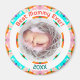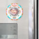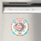 Bonito Circular Dia das Mães Nova Mama Menina Menina Foto de Magneta de Presente. Em primavera e verão, cores de cor rosa, azul-turquesa, roxo, creme, verde e laranja. Um horário de primavera e uma borda redonda ao redor do verão rodeia a foto no meio. Substitua a foto por uma foto do seu novo e belo menino ou menina, ou criança. O texto no topo diz "Melhor Mamã Nunca!" em Laranja. No fundo está o ano, em verde. Personalize-o mudando o ano. Dê como presente para uma nova mãe no Dia das Mães. Mamãe, mãe, mãe, mamãe, múmia, e mãe adorarão colocar esse íman de presente na geladeira para celebrar o nascimento de seu novo bebê. Em cores lindas, brilhantes e leves.