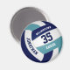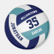 Este ímã temático de vôlei com cores personalizadas apresenta a imagem realista de um vôlei que tem painéis azuis, lacrimogêneos e brancos em que você pode personalizar o nome do jogador & número de camisa mais nome da escola ou do clube e o nome da mascote em uma letra estilo varsity - por katz_d_zynes