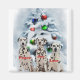 Bela arte de Natal Dalmaciana. Três arte Dalmatianos adorável além de uma árvore de natal decorada. Cartões, ornamentos e roupa. Muitas ideias de presentes para amantes Dalmáticos para fazer o presente dando feriado extra especial.